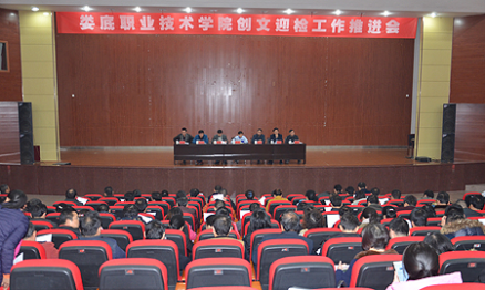 在动员大会上,党委副书记王健龙传达娄底市创文迎检动员大会精神。副院长颜彩飞传达了娄底市创文迎国检工作推进会精神,宣读了我院创文迎检方案。副院长刘自斌强调校园卫生工作。纪委书记邹松建宣读《娄底市创建全国文明城市工作问责办法》。副院长周志和传达教师村建设有关情况。