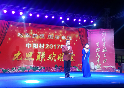 12月28日晚,中阳村文化广场上张灯结彩,村民们载歌载舞,欢庆即将到来的2017年元旦与新年。