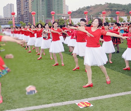 集体舞表演由1600余人同时展开。我院“老来俏”舞蹈队由机关总支部书记兼组织部副部长吴丽娟任领队,共22人,她们表演的《美丽中国》、《乡里妹子进城来》舞蹈,充分展示了我院教职工的精神风貌和健康风采。