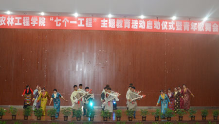 随后举行的歌舞晚会展示了该院独有的民族特色,藏族舞蹈《踢踏舞》、《雅砻西扎》、《情满草原》等别具特色,仿佛令人置身于美丽的青藏高原。歌曲《巴拉格宗》、《brock》、《昌都玄子》、《父亲的散文诗》,还有藏语的《喜欢你》,再加上逗趣的小品《青春不散场》,活跃了现场气氛,点燃了青年学子的激情。(宣传部)