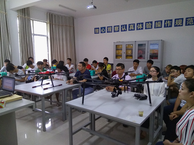上午9点,在培训楼118室,南方测绘科技股份有限公司湖南分公司寻林辉副总经理从测绘行业的发展历程进行了讲解,并对学生的职业生涯规划进行指导。南方测绘科技股份有限公司湖南分公司王老师就无人机航拍技术的发展及应用做了专题讲座。下午4点,在学校田径场,南方测绘使用六翼和八翼两种型号无人机进行了两架次的飞行和航拍测绘。