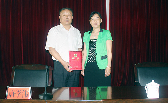 在热烈的掌声中,李文莲向唐学伟颁发了我校办学顾问的荣誉证书,正式聘请其担任我校办学顾问。