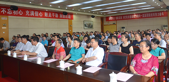 6月23日上午,我校新任党委副书记、校长朱忠义到任。见面会在主教学楼报告厅举行,市委常委、组织部部长华学健,市委组织部常务副部长彭展发,市委组织部副处级组织员、人才科科长李劲松,我校党委书记李文莲,党委副书记、校长朱忠义在主席台就座,全体校领导、中层干部与会。李文莲主持大会。