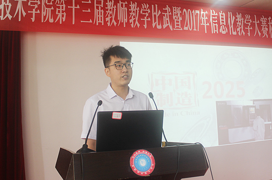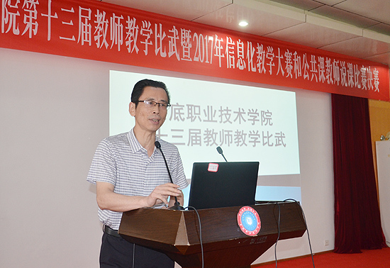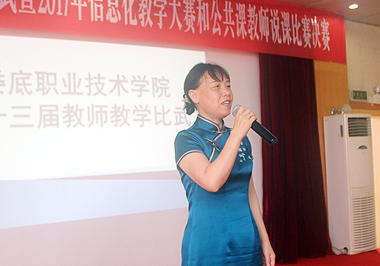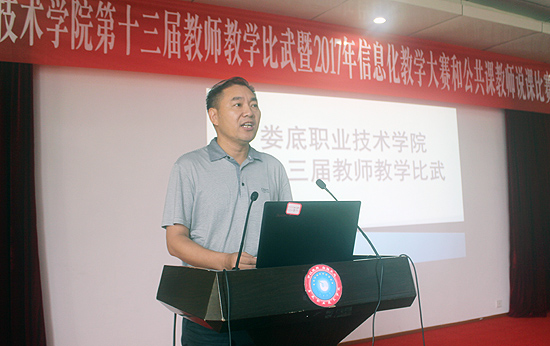 7月2日,由教务处组织的娄底职业技术学院第十三届教学比武暨2017年信息化教学大赛和公共课教师说课决赛在主教学楼多媒体报告厅圆满落幕。经二级学院(部)初赛选送的方式,共有35名教师参加了此次学院决赛。在家的全体校领导莅临比赛现场。教学督导团团长、相关职能处室负责人担纲评委。各二级学院(部)负责人、教师代表观摩比赛。教务处副处长朱燕主持比赛。