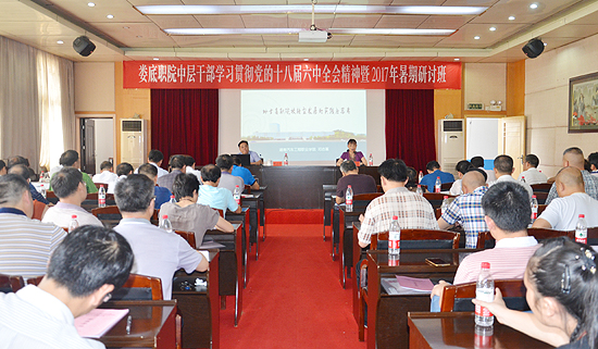 7月11日下午,湖南汽车工程职业学院党委书记邓志革教授应邀来到我校,给中层干部研讨班作《地方高职院校转型发展的实践与思考》专题讲座。讲座由党委书记李文莲主持。