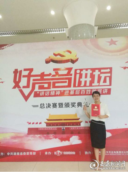 娄底新闻网讯(通讯员 周旺东 刘艳)8月9日上午,全省2017年度“好声音讲坛——讲话精神进基层”百姓微宣讲总决赛在长沙举行,娄底职院思政课部教师辜桃在比赛中表现优异,获得二等奖。