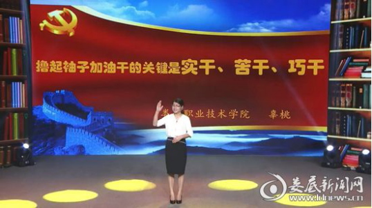 娄底职院的辜桃老师在日前省教育厅的选拔赛中力拔头筹,获得一等奖,因而被省厅选送参加总决赛。总决赛上,辜桃老师从容不迫,落落大方,以《撸起袖子加油干的关键是实干、苦干、巧干》为主题,从自己的工作实际、切身感受出发,用饱含深情的语言、真实鲜活的事例、感人肺腑的故事,发出基层的声音,彰显了广大扎根于基层和平凡岗位的党员干部积极进取、爱岗敬业的良好精神风貌。
