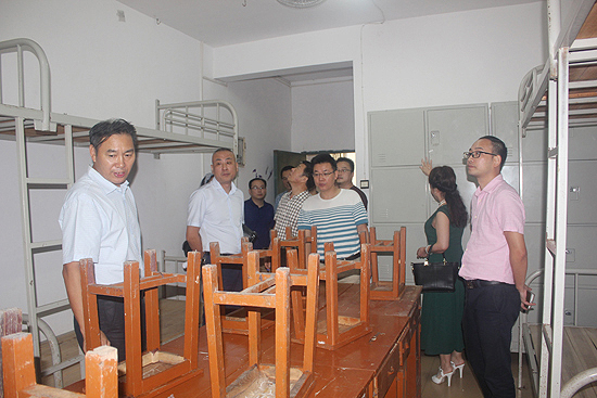 9月6日下午,校长朱忠义,副校长龙伟、刘自斌、周志和带队检查学校开学及迎新准备工作。学工处、招生就业处、后勤基建处、后勤服务处、资产处、保卫处、宣传部负责人及部分二级学院负责人陪同检查。