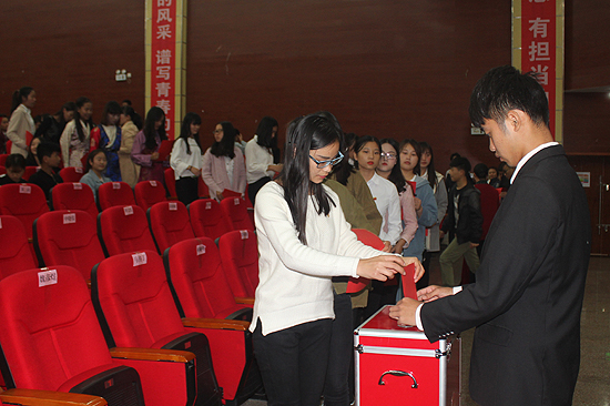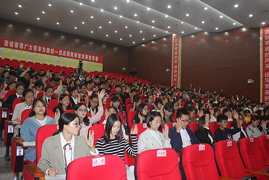 11月5日上午,我校学术报告厅团徽高挂,红旗飘扬,共青团娄底职院第四次代表大会在这里隆重召开。经各学院民主推选出来的369名团代表肩负全校18000余名团员青年的信任与重托,身佩团徽,满怀神圣与自豪之情走进会场,行使自己的光荣职责。