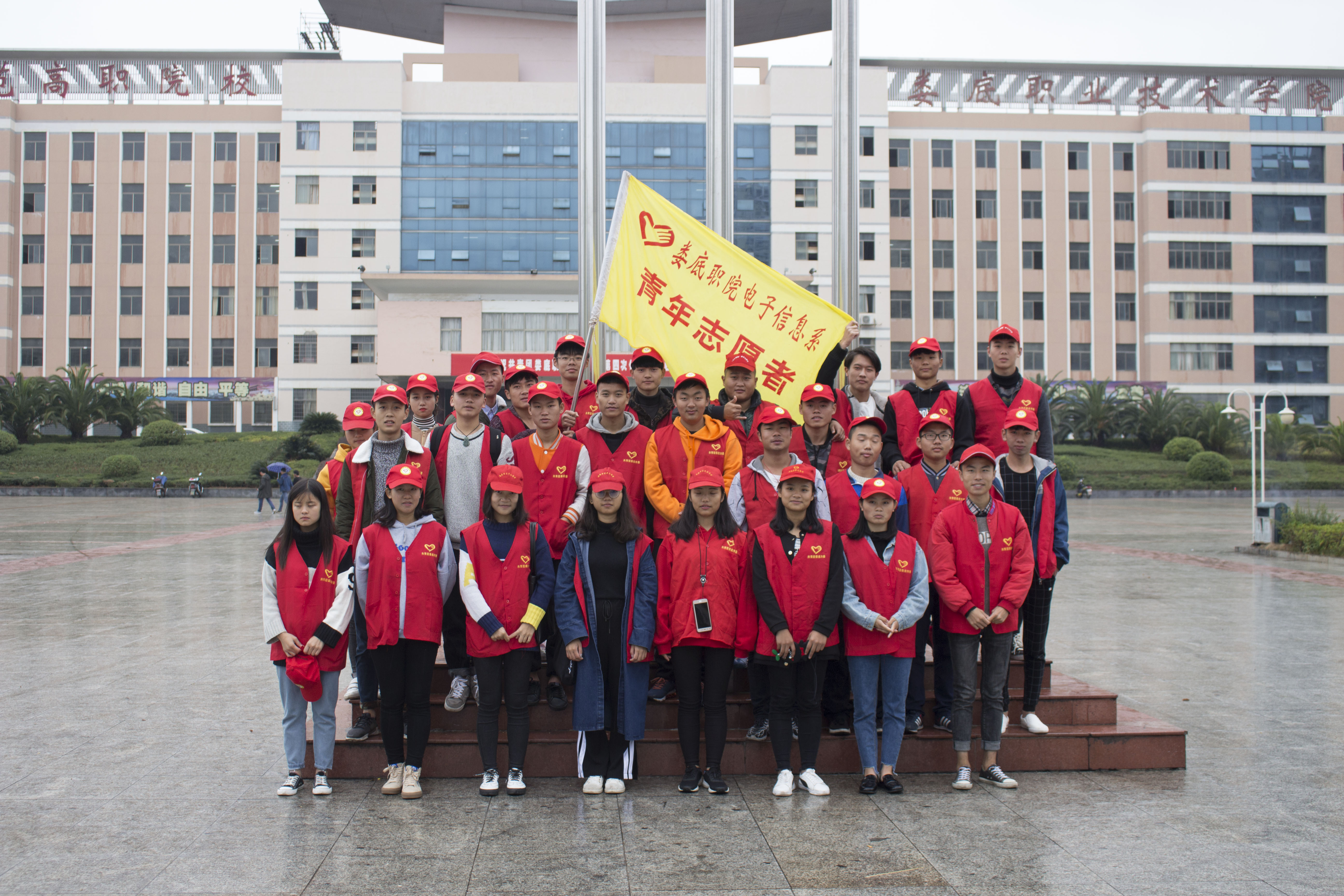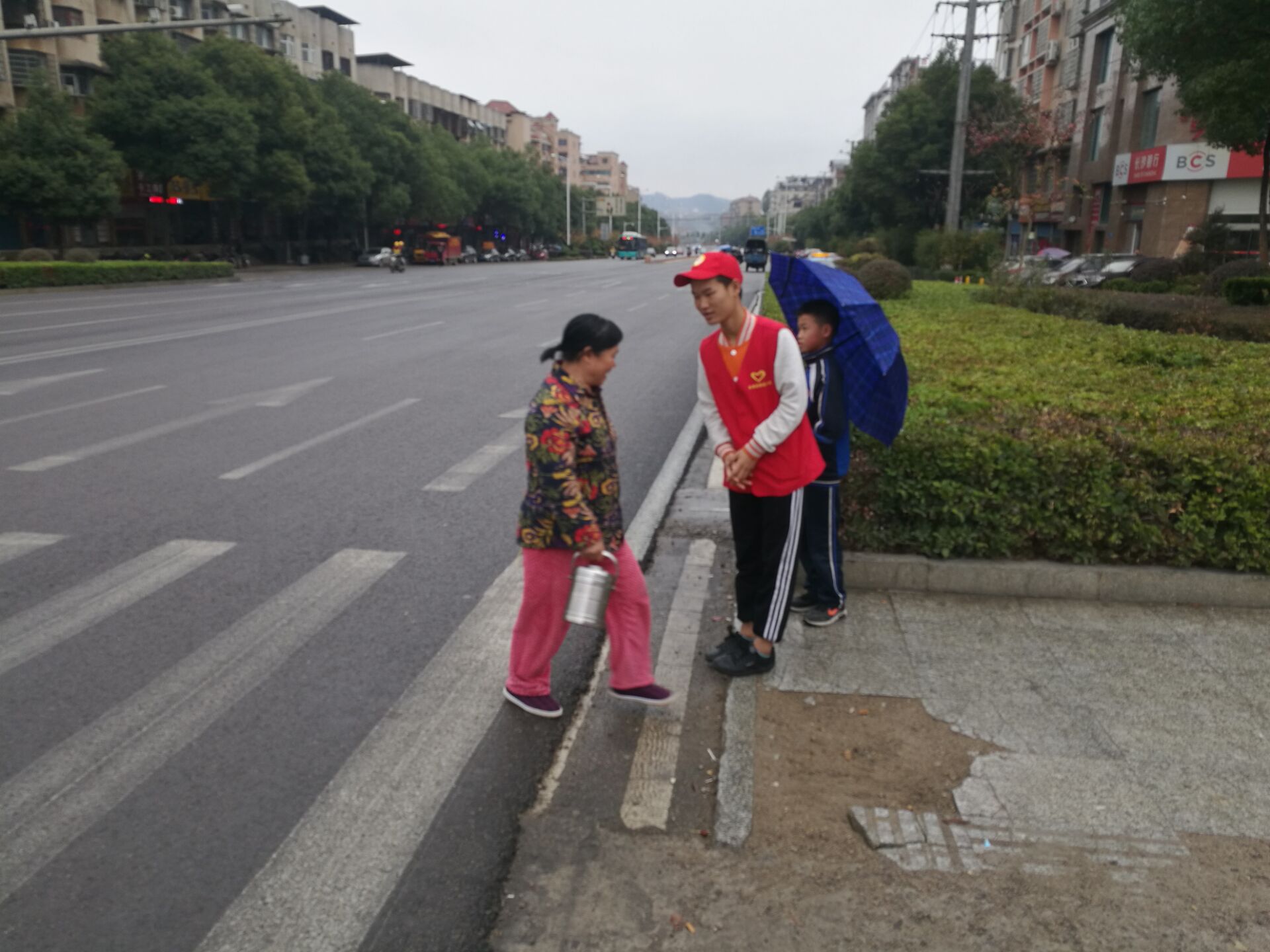 本着“文明礼让,路路平安;交通文明,人人放心”的原则。11月13日,电信学院第八期业余团校全体成员在校门口的国旗下集合,开展志愿者“交通文明劝导”活动。志愿者穿戴好了印有娄底职业技术学校志愿者的红背心与帽子,举起电子信息工程学院的青年志愿者系旗,在这个毛毛细雨、寒风阵阵的天气中开始了志愿者活动的第一步。