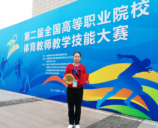 11月24日,第二届全国高等职业院校体育教师教学技能大赛在江苏苏州职业大学举行。我校公共课部喻林老师以全国最高分93分的成绩获得教学设计与实践项目一等奖及总成绩一等奖。
