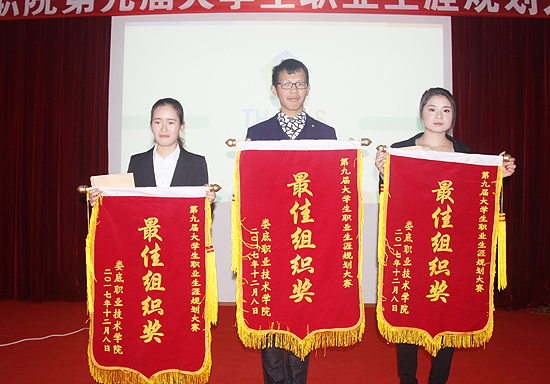 12月8日,第九届大学生职业生涯规划大赛在我校主教楼多功能报告厅举行,大赛由思想政治理论课教学部主办,各二级学院、教务处、宣传部、招就处、学工处、团委协办,思政课部主任周旺东、招就处处长戴志鹏、校团委书记刘媛、督导团团长吴莲贵、校艺术团团长刘轶中、思政课部副主任贺山青、思想品德与职业指导教研室主任贺建新担任大赛评委。
