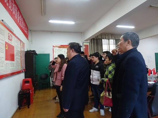 学院党总支部书记李济民对13名同学在校表现表示肯定。希望他们过去优秀、现在优秀、带动身边的同学一样优秀。晏然认为示范源于优秀,希望各位同学在往后的工作、学习、活动上起好模范带头作用。最后,学院团总支书记张雯宇主持宣誓仪式并带领预备党员宣誓。(电信学院)