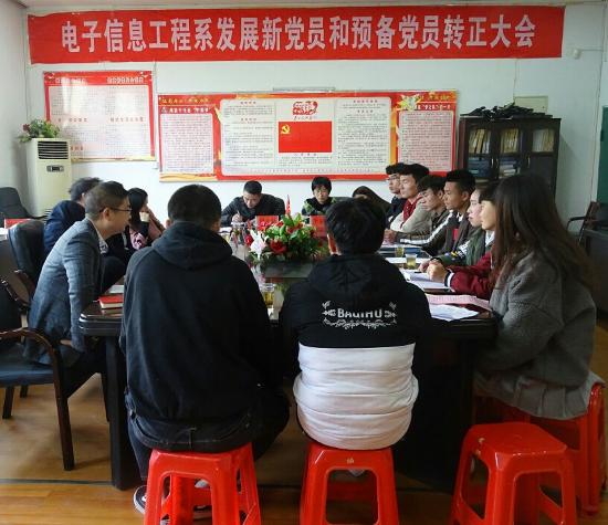 12月8日,电子信息工程学院在实训楼207召开2017年下学期学生党员发展大会,学院全体领导班子以及学生支委成员与会,大会由副院长晏然主持。