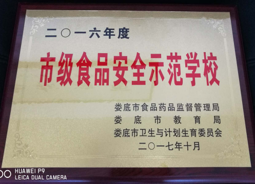 12月19日,在市政府召开的娄底市“食品安全护苗行动”成果新闻发布会暨学校及周边食品安全整治推进会上,我校本部被评为娄底市2016年度市级食品安全示范学校,并现场颁发了“市级食品安全示范学校”牌匾。