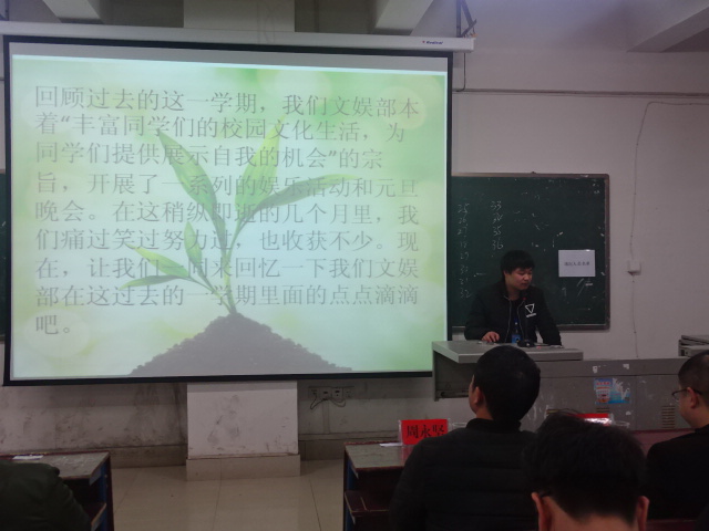 首先,由学生会主席雷佳明、副主席文鹏杰分别对本学期学生会工作进行总结汇报,团总支副书记李佳琦对本学期团总支工作进行总结汇报。大会表彰了“优秀部门”以及“优秀干部”,由晏然为优秀部门纪保部、女生部、文化娱乐部颁奖合影,由张雯宇以及周永坚分别为27名优秀干部颁奖合影。优秀部门部长以及优秀干部代表分别对部门及个人本学期的工作进行总结汇报,分享自己在学生会团总支的工作经验、心得。
