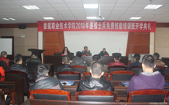 1月18日,娄底市2018年冬季退役士兵职业技能培训班在综合楼101教室开班。继续教育学院副主任李甄、邓喜培、培训班班主任曹辉英等出席了开班典礼。来自娄星区、涟源市、冷江市的60余名退伍士兵参加了开班典礼。