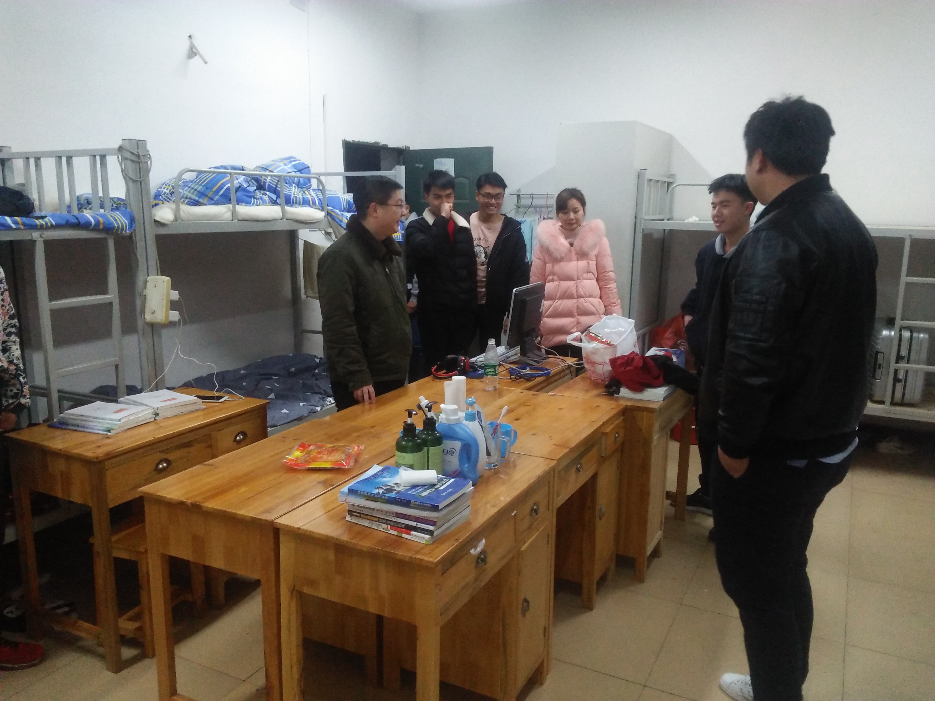 3月7日晚,电子信息工程学院副院长晏然、学工干事周永坚以及全体辅导员深入学生宿舍,询问学生返校情况,查看寝室卫生以及存在的安全问题,听取学生意见以及向学生提出希望。