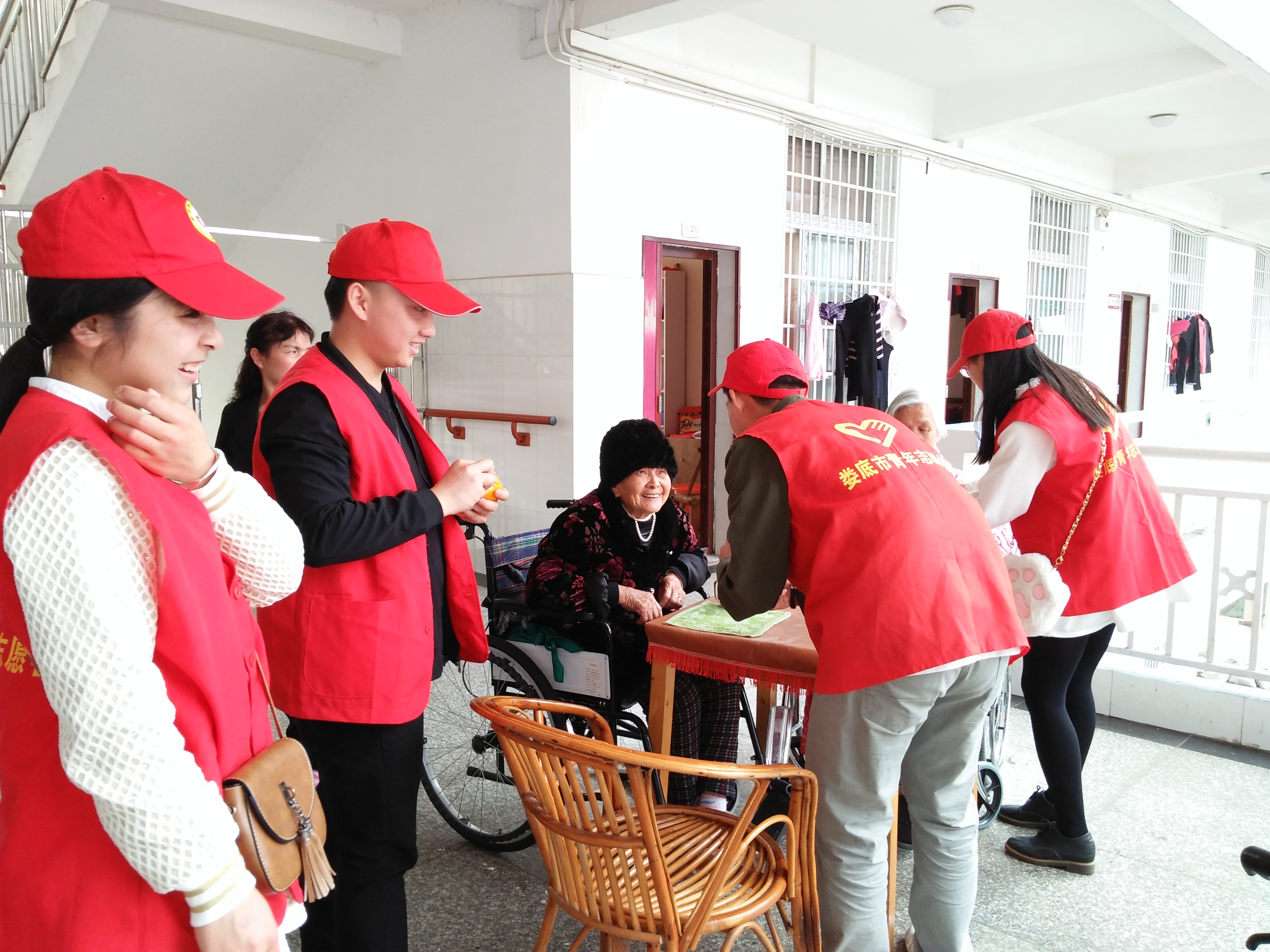 该院20余名志愿者们在路上为老人们精心挑选了一些水果,来到娄底福星福利院给老人剥水果、按摩捶背,帮助老人们打扫房间;和老人们谈心、嘘寒问暖,为老人们创造了一个舒适的生活环境,欢声笑语,气氛十分融洽。活动持续了三个多小时,当志愿者们准备离开时,老人们非常感谢他们的照顾,感受到了社会对他们的关怀和温暖。
