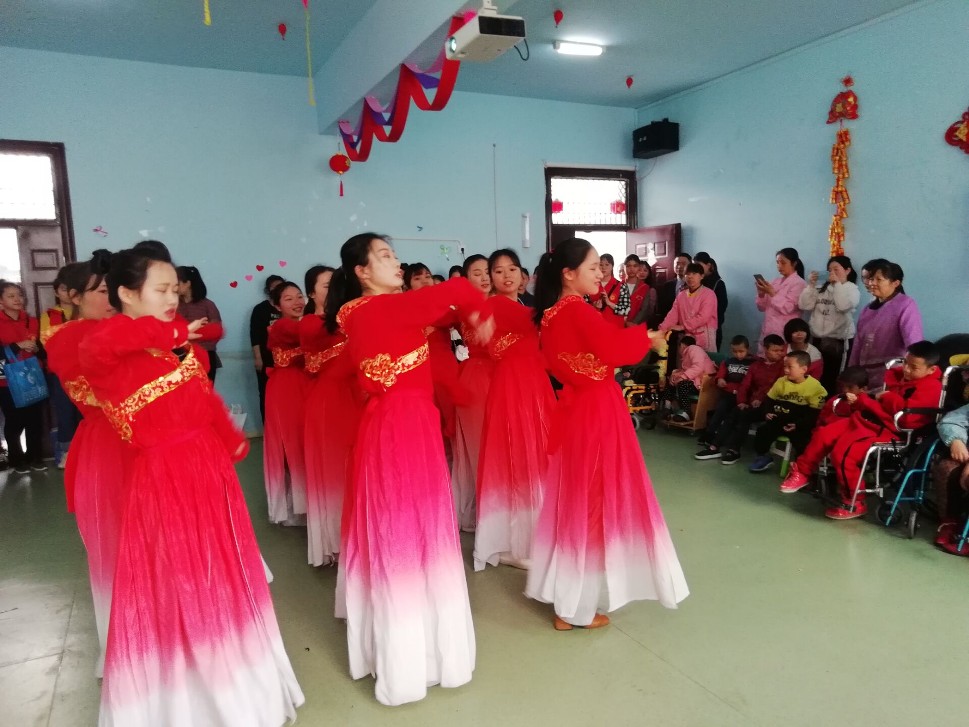 护理学院志愿者一行刚到福利院,便受到该院刘老师的热情接待。刘老师向师生详细介绍了福利院的历史、现状、孤儿收养和生活相关情况,并代表福利院接受师生捐赠的奶粉、尿不湿等慰问品。部分志愿者为福利院进行大扫除后,便抚摸陪伴在宿舍床上的孩子们休息。在活动室里,我们给小朋友们表演了拉丁、恰恰、街舞、古典舞、等五个节目。孤儿院的孩子们也献上了他们的才艺,有表演鼓的,有表演手语的,与志愿者们一起唱歌、跳舞,让爱的暖流在福利院到处涌动着。