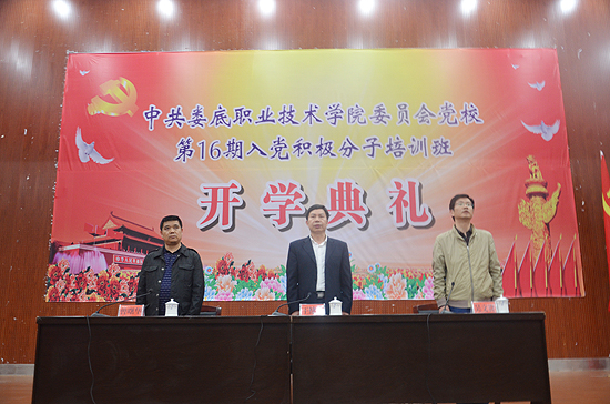 4月26日晚,我校党校第16期入党积极分子培训班在新培训楼学术报告厅开班。党校校长、校党委副书记王健龙,党校常务副校长、组织部部长吴文贵,党校副校长、组织部副部长曾曙华,各分党校和各二级学院相关人员、第16期入党积极分子培训班全体学员与会。开班仪式由吴文贵主持。