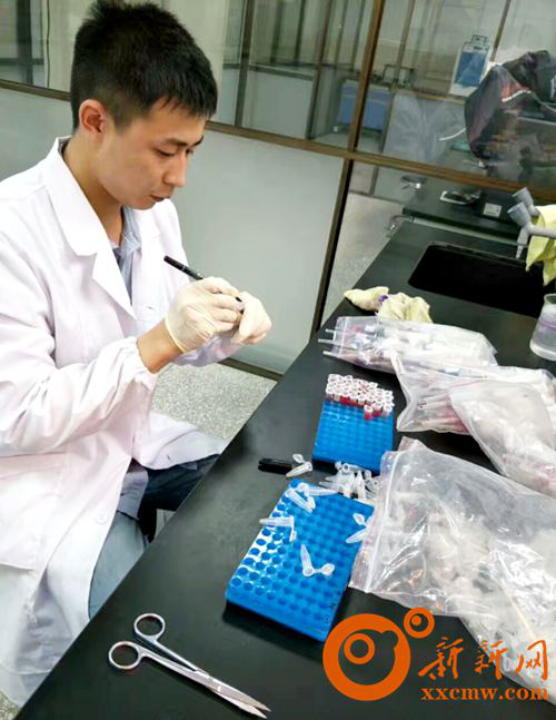 图为杨铁柱在实验室做检测