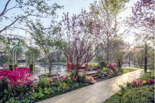 “每做一个绿化工程项目,我都用心锻造,想象这是自己和家人要去住要去散步要去游玩的地方”,杨强说。他承接的“蓝光雍锦”项目,将大量中国传统文化要素与现代工艺结合,打造别致的绿植天井、金属雕花镂空式廊挡以增加空间的光亮度与透气性,运用金属雕花镂空屏风、水墨屏风配合地灯、脚灯,营造出浓厚的中式现代世家院落风范。“龙湖听蓝湾”项目上,他强调回归自然的理念,整个空间三分之二为草地、绿植,游乐区、住屋、小路统统被绿色包围,兼顾层次感与通透性,伸出小区围墙的树枝、绿枝中隐约可见的红花又给小区增加了几许神秘。