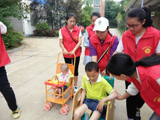 5月19日早上,护理学院团总支青年志愿者工作部、舞蹈队、宣传部、社团部,街舞社,学生会,校记者分站志愿者来到娄底市社会福利院开展慰问活动。福利院的相关人员在大门口迎接,同学们来到儿童活动室,陪着他们聊天、跳舞、玩游戏。活动室充满了温馨欢乐的气氛。还有一部分同学帮助工作人员打扫卫生,编织手工艺品,做一些力所能及的事情。 即将离开时,孩子们挥手道别,这次活动不仅给孩子们送去了欢乐,送去了笑容,也给参加了这次活动的同学一次心灵的洗礼,使她们学会了关爱他人,学会了分享快乐。(李婷)