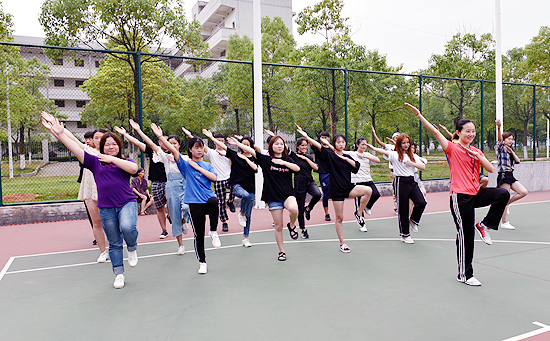胡贞渝的生活非常忙碌。除了上课,她还经常代表学校参加省市各类比赛,还承担了许多校内外比赛、表演的裁判、教练、指导、编排工作。