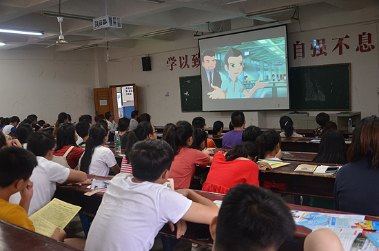 在讲座课堂之外,“普及金融知识,守住钱袋子”活动的宣传人员还在我校主教学楼大厅设置了宣传台、展板,向学生发放宣传资料,提供咨询。此项活动对我校平安校园建设具有积极意义,对于进一步提升广大师生正确认识和分辨金融活动的能力,增强防范金融诈骗的意识起到了积极的作用。(杨丹丹 杨克邪 李倩艳)