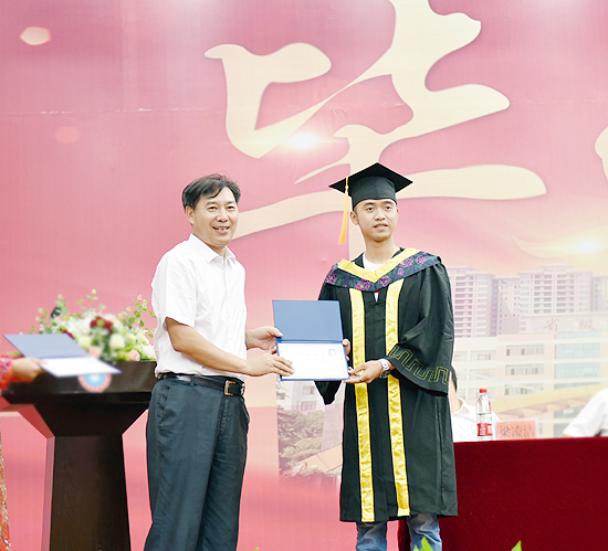 党委书记李文莲为湖南省普通高校百佳大学生党员、湖南省优秀毕业生颁发了荣誉证书。校长朱忠义为优秀毕业生代表颁发了毕业证书。