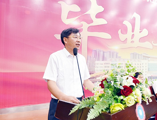 党委委员、副校长龙伟首先讲话,介绍了2018届毕业生情况:2552名同学圆满完成了学业,251名同学获得国家奖学金或励志奖学金,4名同学获得“湖南省创新创业优秀毕业生”称号,31名同学通过“专升本”考试进入本科大学深造,66人次在省级以上职业技能竞赛获奖,5312人次获得职业资格等级证书。