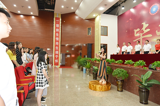 最后,全体起立,师生齐唱娄底职院院歌,圆满结束了典礼。