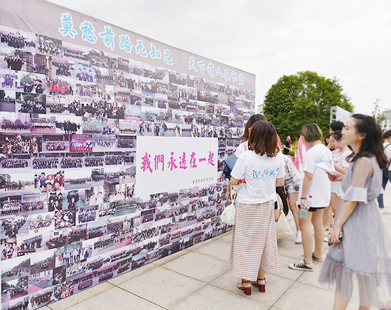 暖场环节,许多毕业生身着印有娄职校徽的T恤“走红毯”,在主题签名留影区留影,在照片墙拍照,在留言墙留言,直言“真有明星一般的感觉”。