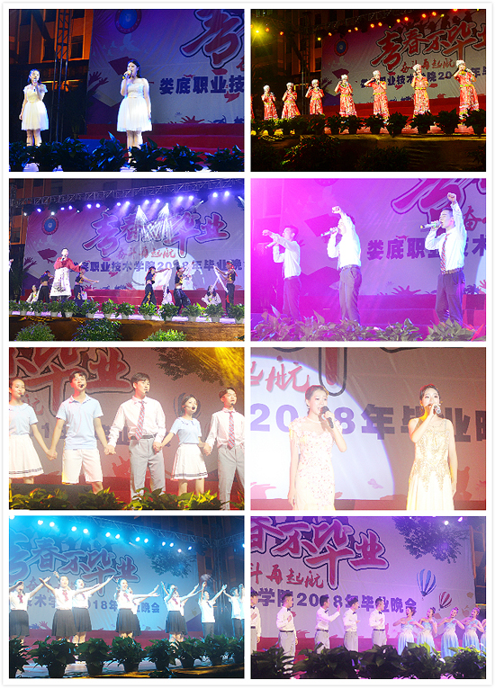 6月24日晚,一场盛大而欢乐的文艺晚会在校园文艺广场隆重上演,展示的是娄职人激情四溢的青春风采,体现的是在校师生对毕业学子的殷殷祝福,全体校领导、2018届毕业学子、在校师生代表齐聚一堂,欢度这精彩的“2018毕业季之夜”。会场外,还有近四万人通过网络直播,在线观看了晚会实况。