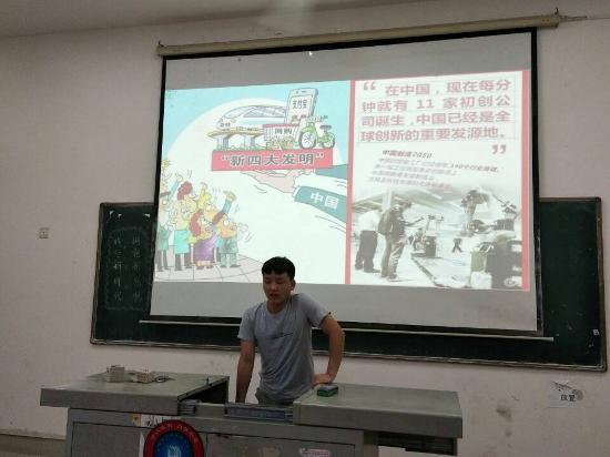 活动伊始,由团支书担任主持人,为同学们讲解PPT,引导同学们初步了解十九大精神的主要意义和习近平特色社会主义新思想。在活动过程中,团支书提出自己对于十九大精神的见解和疑问,引发了同学们的思想,大家积极投入,场面热烈,还上台分享了自己对于十九大精神的心得体会和自己学习、生活的亲身经历。