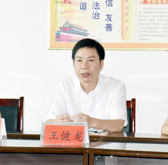 王健龙讲话,指出2018年是建新村脱贫摘帽之年,希望村支两委主动作为,切实履行脱贫攻坚的主体责任,我校及扶贫工作队积极配合倾情倾力支持,努力实现建新村脱贫目标。