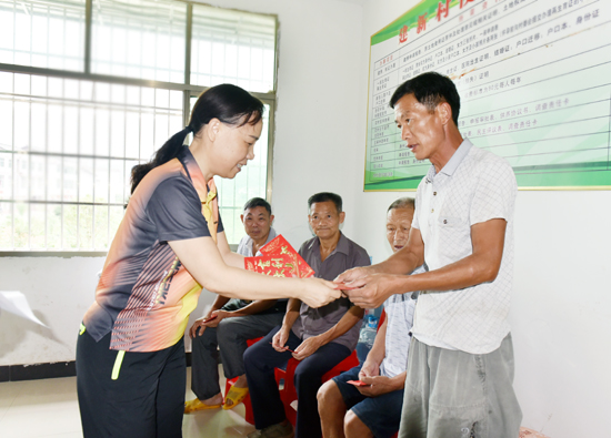 会后,李文莲等慰问了建新村贫困老党员。李文莲与老党员们围坐在一起,亲切地询问大家家中情况:“家里有几口人?现在主要做些什么农活?有什么困难吗?”李文莲勉励老党员们继续发挥先锋模范作用,带头脱贫攻坚。