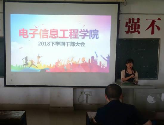 9月5日,电信学院学生会团总支在主教楼510召开2018年秋季新学期干部大会。副院长晏然,学生会团总支全体学生干部参加本次会议,会议由团总支副书记李佳琦主持。