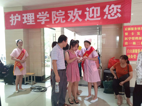 在医学院报到的众多女生中,一名男生颇为引人注目,他是来自湖南湘乡的文旭,报名护理专业,为什么会选择这个女生众多的专业来就读呢?文旭家长说:“孩子认为这个专业好就业,也能学到一门好技术,一定要来,我们觉得也有道理,便支持孩子的选择。希望他在这三年里好好学习,拿到资格证书。”