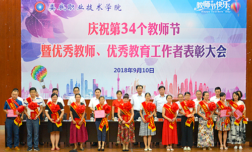 危英等13名教师获“优秀教师”称号,罗金玲等13名教师获“优秀教师提名奖”;朱燕等7名教师获“优秀教育工作者”称号,张秋亮等8名教师获“优秀教育工作者提名奖”,曹滢丹、喻林2名教师获得“特别提名奖”。获奖教师身披大红花上台领奖,全体院领导为其颁奖。同时,大会还通报了土木工程学院陈翔教授被娄底市教育局评为娄底市“教育名师”的喜讯。