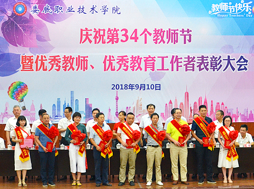 本网讯 9月10日,在第34个教师节来临之际,娄底职院在学术报告厅隆重举行庆祝教师节暨优秀教师、优秀教育工作者表彰大会,党政领导班子、离退休老同志代表、中层干部和教师代表欢聚一堂共庆佳节。院长朱忠义主持大会。