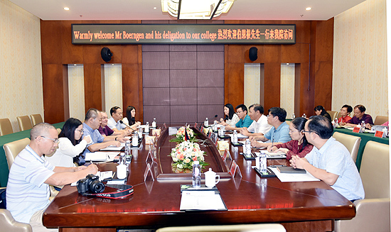 9月17日,德国梅克伦堡-前波美拉尼亚州(下文简称梅前州)经济大使伯恩根先生在湖南中德科技孵化器有限公司总经理陈为民、娄底市贸促会会长段大长及湖南省贸促会、湖南省国际商会联络人陪同下,来到我校访问。党委书记李文莲、校长朱忠义、副校长颜彩飞、刘自斌、周志和及党政办、人事处、教务处、校企合作办、部分二级学院负责人陪同参观考察。