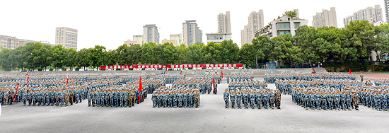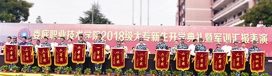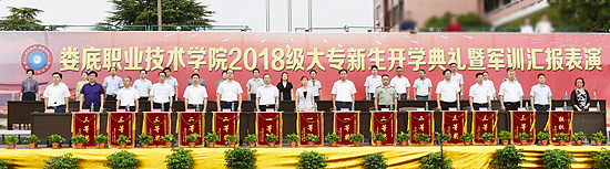 9月22日,秋高气爽。上午8点,我校2018级大专新生开学典礼暨军训汇报表演在田径运动场隆重举行。娄底市教育局局长李耀文、娄底军分区常委、战备建设处处长彭文、娄底市教育局党组成员肖志治、娄星区武装部副部长龙逸群及全体校领导出席。各院部处室主要负责人、辅导员、教师代表、全体军训教官、2018级全体新生参加。典礼由校党委委员、副校长周志和主持。