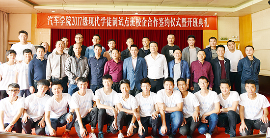 据了解,汽车学院借鉴德国“双元制”身份管理模式和教育部第一第二批现代学徒制试点学校的教学组织模式,结合之前的校企合作办学经验,以就业导向的人才培养质量为核心,学校,企业双主体培养,按照人才培养标准、课程标准、质量监控标准,保障学生实习岗位对口,实习指导双导师,实习待遇有报酬,实习安全有保障,开展现代学徒制试点工作。将建立校企“双主体”育人机制,“招生招工一体化”的招生模式,“三双一体贯通式”的人才培养模式,校企共建矩阵模块式课程体系,“4+2”“白加黑”式教学组织模式,“就业双创融合式”成才模式,校企互聘共用的教师队伍,建立体现现代学徒制特点的管理制度,探索学分制管理办法与弹性学制管理,以行业评价为主、多方参与的考核评价机制,完善过程考核与结果考核相结合的教学质量监控体系,成立学徒(学生)申诉委员会,制订学徒权益保障办法,通过两年试点,初步形成产教深度融合院企“双主体”育人的现代学徒制教育形式。(欧阳琦)