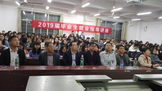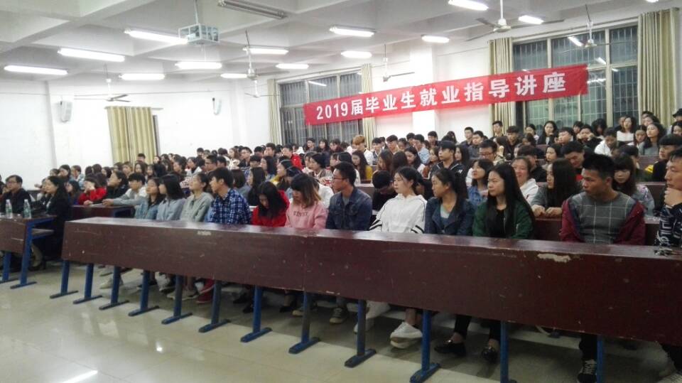 为了帮助2019届毕业生准确有效地确定就业方向,指导毕业生如何走好从大学走向社会的重要一步,10月19日晚,经济管理学院于主教楼110举行“2019届毕业生就业指导”讲座,讲座特邀湖南开拓中小企业服务有限公司总经理、娄底市电子商务协会执行秘书长彭祖菊主讲,讲座由经济管理学院院长雷晚蓉主持,娄底市电子商务协会秘书长、电商全科技术专家米久亮,娄底市电子商务协会执行会长王建明,招生就业处处长戴志鹏,副处长王少英、周建高,经济管理学院学工副院长刘文荣及2019届全体毕业生参加此次讲座。