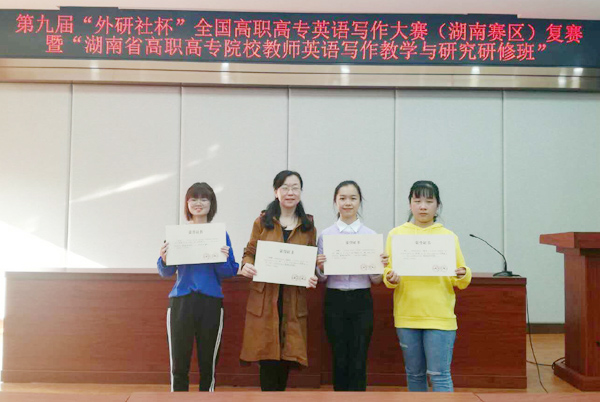 2018年10月28日,第九届“外研社杯”全国高职高专英语写作大赛(湖南赛区复赛)在湖南邮电职业技术学院圆满落下帷幕。全省共有42所高职高专院校参加此次大赛,参赛选手93名,是有史以来规模最大的一次。由邓海燕、谢杰老师指导的2016级应用英语2班郑颍怡同学荣获英语专业组特等奖第一名;2016级会计4班林远香同学荣获公共英语组三等奖。