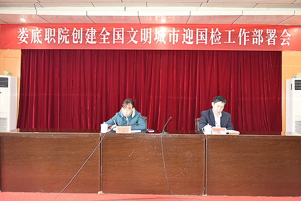 党委书记李文莲发表讲话,提出四个方面的要求:第一,对标对表,明确文明创建迎国检工作,在思想上高度重视此次创检工作,我校作为地方高校理所当然要成为当地的文明标兵,要为娄底市争得荣誉;第二,群策群力做好创检工作,大家在创管工作中付出了努力,取得了成绩,但仍需努力;第三,绘声绘色展示魅力娄职的好形象,通过即将到来的创文国检,树立好我校的良好形象;第四,有奖有惩,责任到人,确保创文迎检工作完美完成。(朱亚鹏)