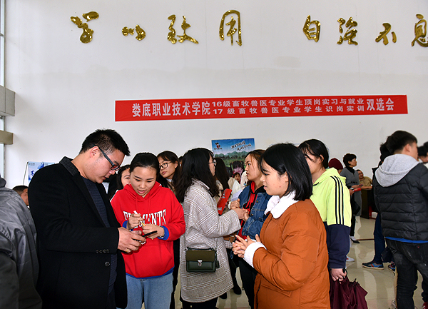 刘梅秋向记者介绍了此次双选会有关情况:畜牧兽医专业于2015年开始试点探索现代学徒制,目前建立了“小学期、真实岗、多循环”的分段育人、工学交替人才培养方案,准确分析面向的职业岗位或岗位群所需的知识、能力、素质等方面,合理设置课程,开设企业课程、学校课程、校企课程,学校牵头,行业协会、企业深度参与,实施校企联合招生、联合培养的现代学徒制人才培养,成效明显。