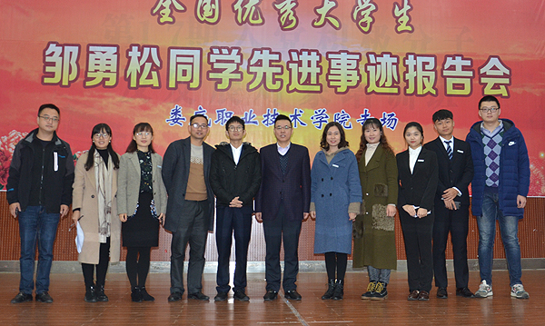 11月16日,“全国优秀大学生”邹勇松同学先进事迹报告会在我校新培训楼举行,我校党委委员、副校长周志和,长沙理工大学计算机与通信工程学院党委副书记兼副院长陈华,我校团委书记刘媛,学生工作处处长李规,学工处副处长阳娟、肖靓,全国优秀大学生邹勇松及邹勇松同学先进事迹报告团成员出席。我校各二级学院学工副院长、辅导员和学生代表聆听报告。